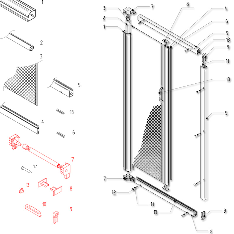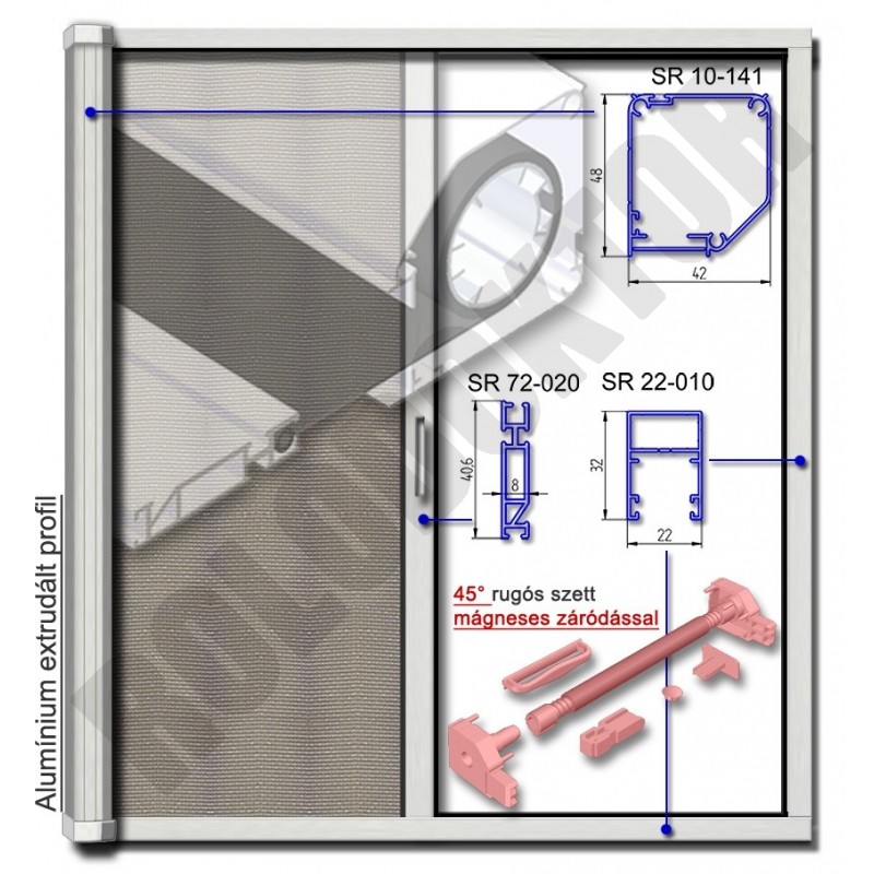 Rolós szúnyogháló ajtó "MÁGNESES", alumínium "SZÖGLETES" tokkal, mágneses záródással